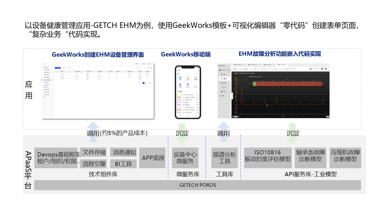 包括技术组件、工业模型、服务库等内容, 以“微服务API”形式沉淀于APaaS平台中,平台提供完整的沉淀、接入、集成、API设计、服务编排、运行等规范及指引。