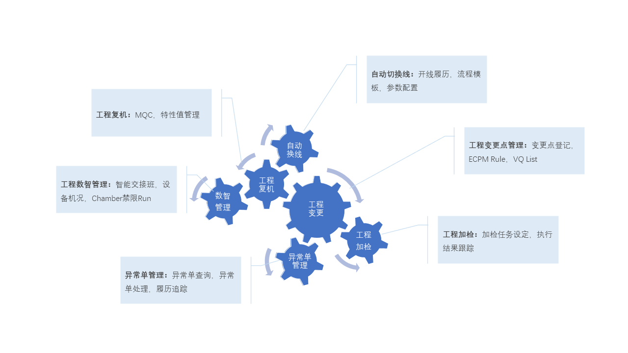 效果: 基于统一应用开发平台,在导入常规CIM系统的基础上,继续扩展优秀的业务系统模块。通过恒行6数字工厂操作系统进行系列的技术改革,以应对数字化挑战。 以工业流程引擎为基础,打造快速满足各个一线核心设备工程团队个性化需求的微应用,包括:自动切换线、工程变更点管理、工程加检、异常单管理、工程数智管理、工程复机等 上线一年仅品质异常事件减少节约金额1000余万元。