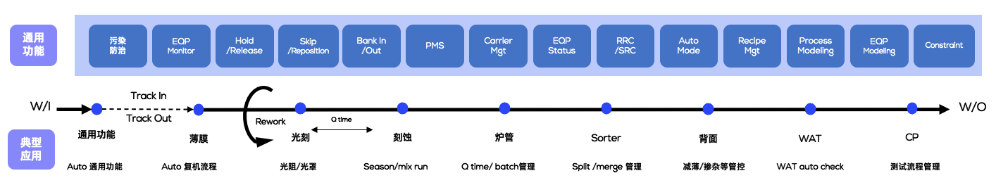 为此,恒行6基于在半导体制造领域的技术沉淀,为该项目量身打造了全栈式CIM智能制造解决方案。方案涵盖生产执行(MES)、设备自动化管理(EAP)、统计过程控制(SPC)等核心系统。其中: