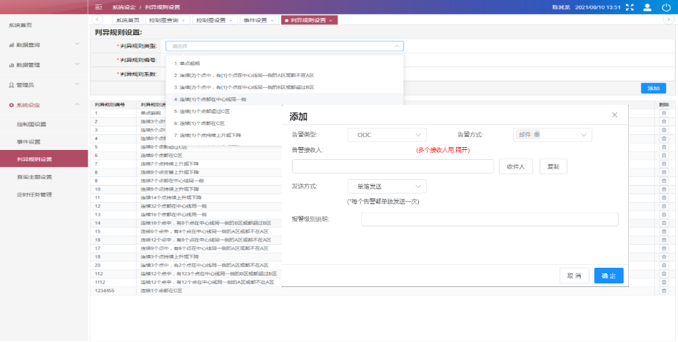 • WECO rule和Nelson rule • 支持自定义rule系数 • 支持Alarm邮件通知