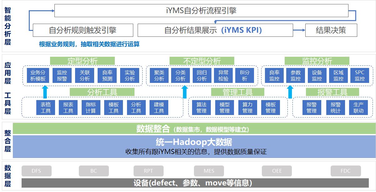 恒行6利用AI+BigData,固化工程人员分析方法,融合MFA、KPC、Spotfire等能力构建统一良率智能平台,解决良率问题,分析产品良率与时间、机台、参数、特征值等各类参数之间的相关关系。一站式良率报表查询与分析,提升业务效率;帮助工程师快速定位异常发生,提升异常解决效率by天->by小时;实现用户自主快速分析建模